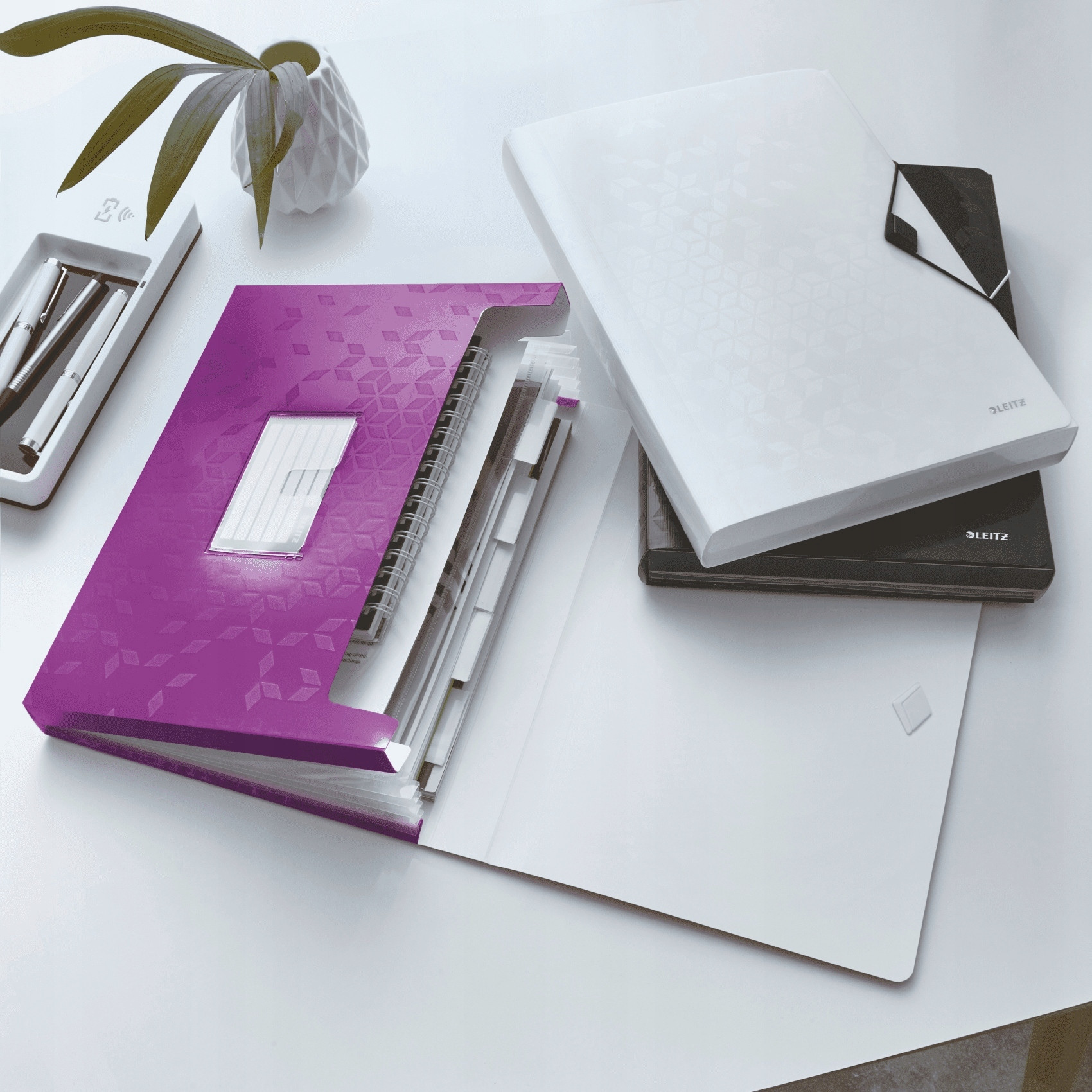 Wysokiej jakości teczka z przegródkami z lekkiego polipropylenu, w zywych kolorach WOW, ze stylowym, geometrycznym wzorem. Idealna do sortowania i porządkowania dokumentów.