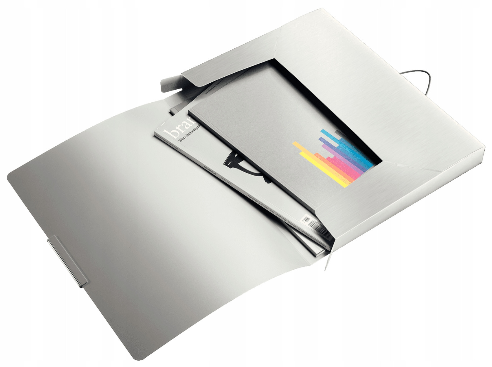 Wyjątkowa, najwyzszej jakości teczka z gumką z grzbietem 30 mm, w nowoczesnym designie ze szczotkowanym wykonczeniem, w intrygujących kolorach.