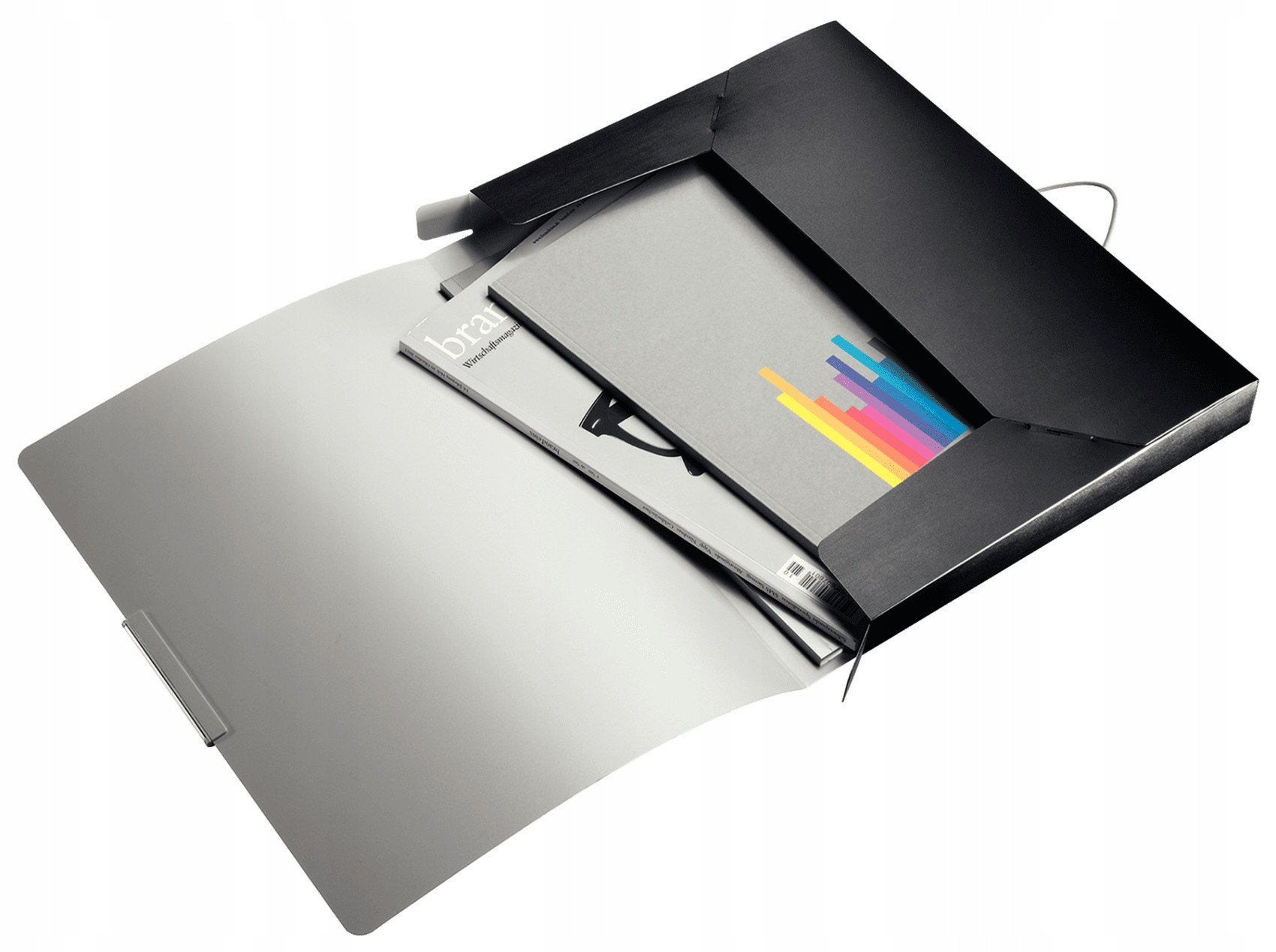Wyjątkowa, najwyzszej jakości teczka z gumką z grzbietem 30 mm, w nowoczesnym designie ze szczotkowanym wykonczeniem, w intrygujących kolorach.