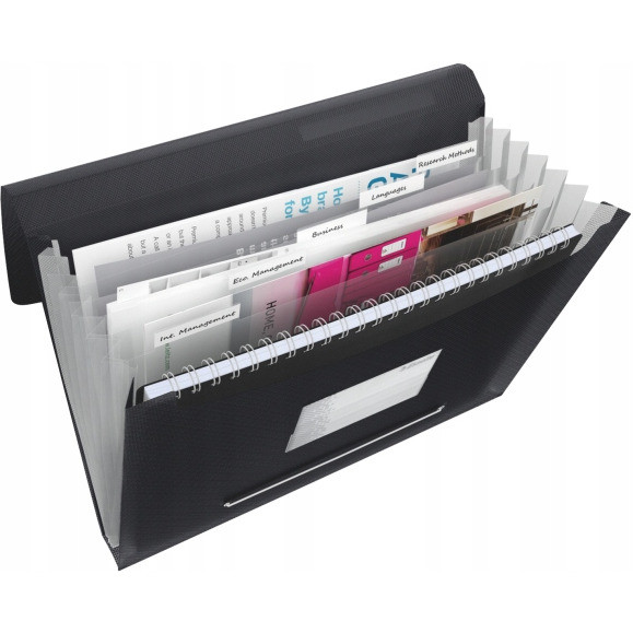 Wykonana z pólprzezroczystego PP o grubości 0.67 mm, zawiera 6 poszerzanych przekladek z indeksami. Duza pojemnośc. Do sortowania i przechowywania dokumentów.