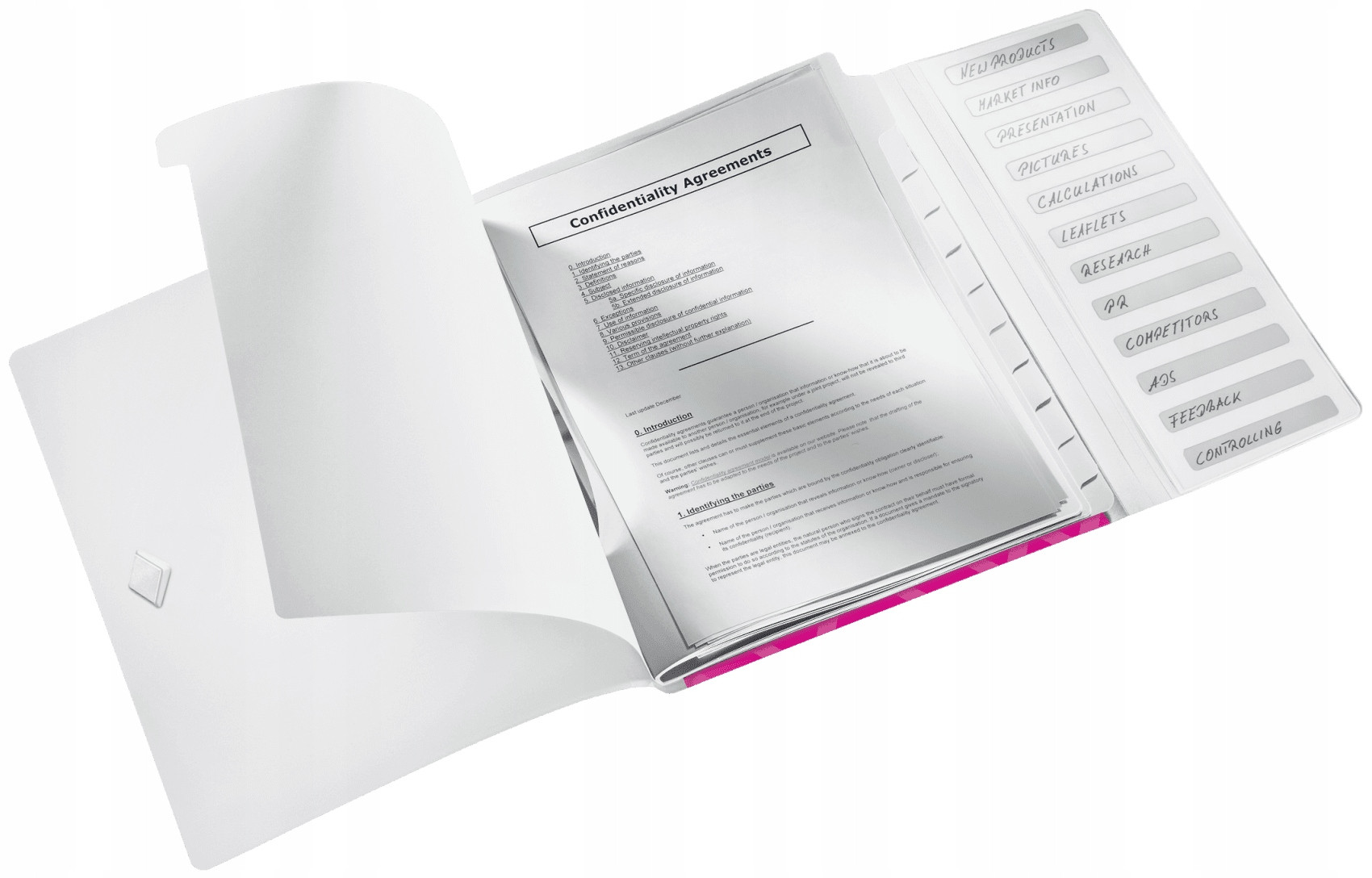 Wysokiej jakości teczka segregująca z lekkiego polipropylenu, w zywych kolorach WOW, z dwubarwnym wykonczeniem. Idealna do sortowania i porządkowania dokumentów w biurze, domu i podczas podrózy.
