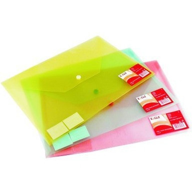Teczka kopertowa na dokumenty, zamykana na zatrzask. Wykonana z wytrzymałego, półprzezroczystego tworzywa w różnych kolorach. Występuje w formacie A4.