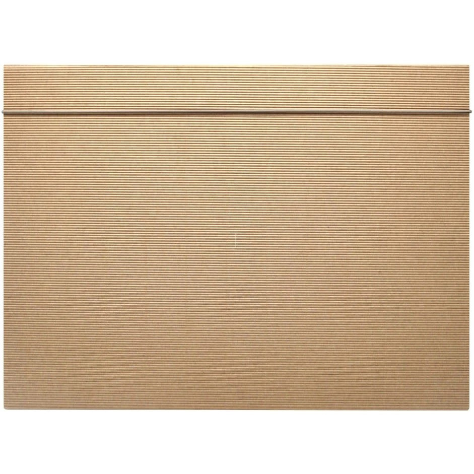 Teczka EKO wykonana jest z szarobrązowej tektury falistej z widoczną na zewnątrz strukturą fali. Teczka jest sztywna, dzięki czemu jest bardzo trwała. Zamykana na gumkę tego samego koloru.