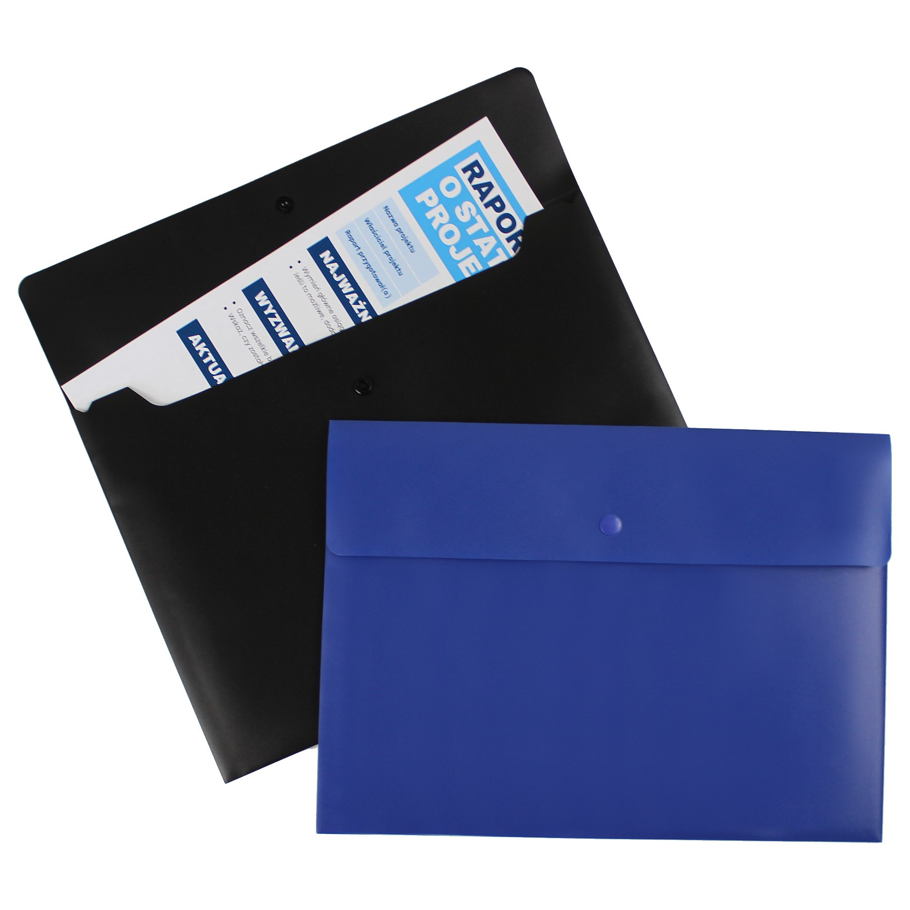 - Zamykana na praktyczny zatrzask (nap) zabezpieczający dokumenty przed wypadaniem.