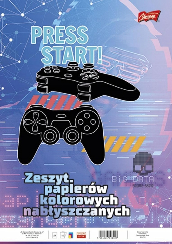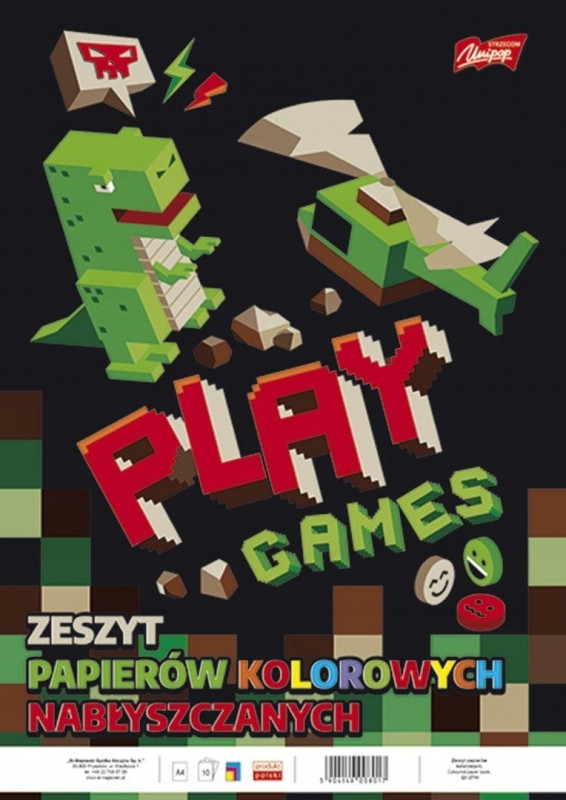 Zeszyt zawiera 10 kolorowych nablyszczanych kartek o gramaturze 90 g/m2. Zestaw kolorów to zloty, srebrny, zólty, pomaranczowy, czerwony, zielony, blekitny, fioletowy, brązowy i czarny. Okladka kredowa o gramaturze 115g/m2 wykorzystuje najnowsze motywy wzornicze UNIPAP. Dla podkreślenia, jakości wykonczenia okladka jest dodatkowo nablyszczana.
