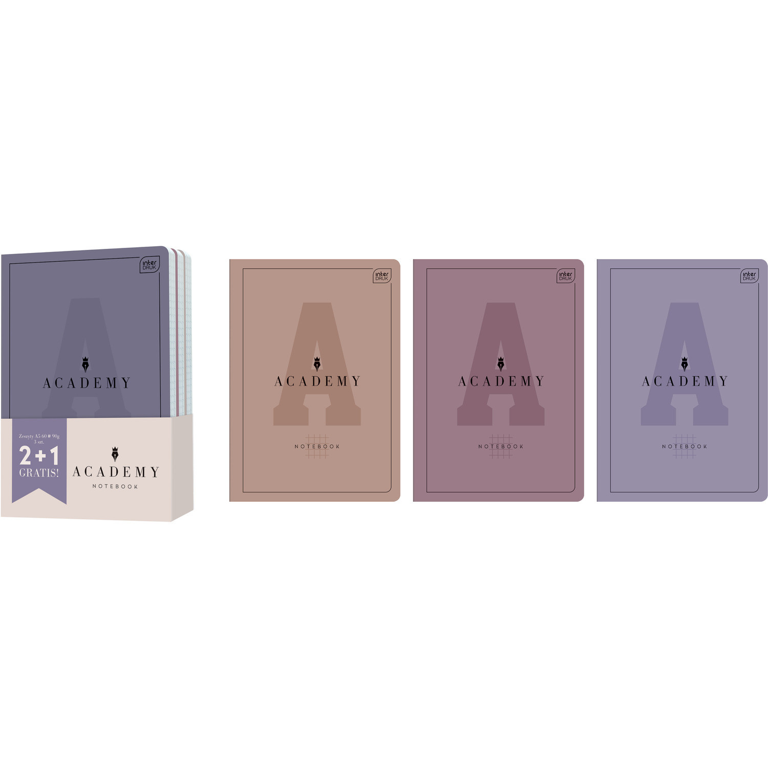 Zeszyt A5 60k kratka ACADEMY (3szt) INTERDRUK