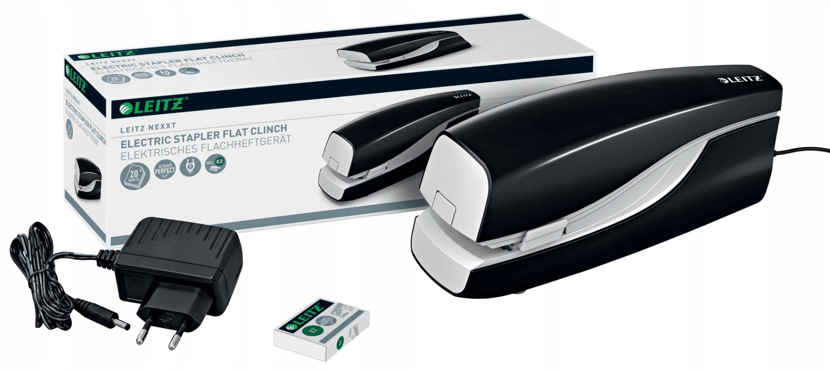 Stosowanie zszywek Leitz E2 przeznaczonych do zszywaczy elektrycznych zapewnia brak zaciec i perfekcyjne rezultaty zszywania za kazdym razem.