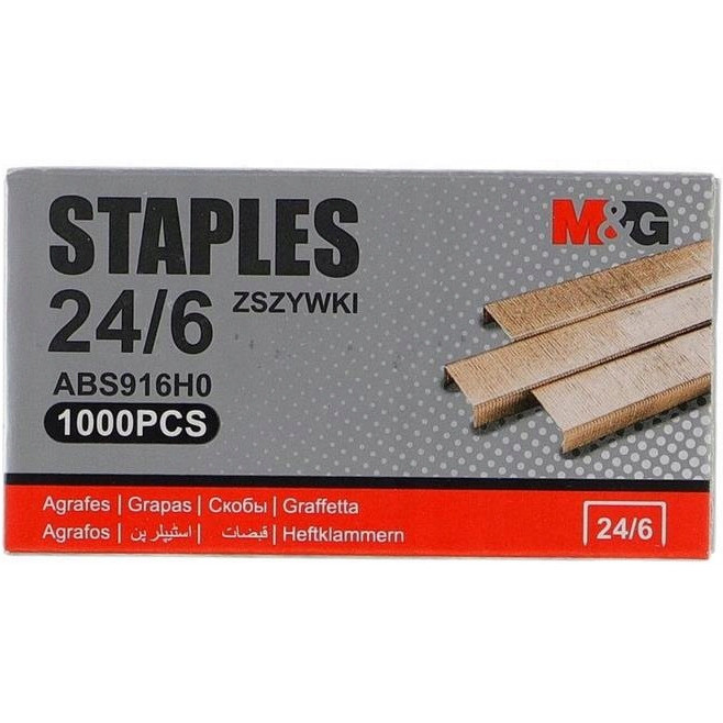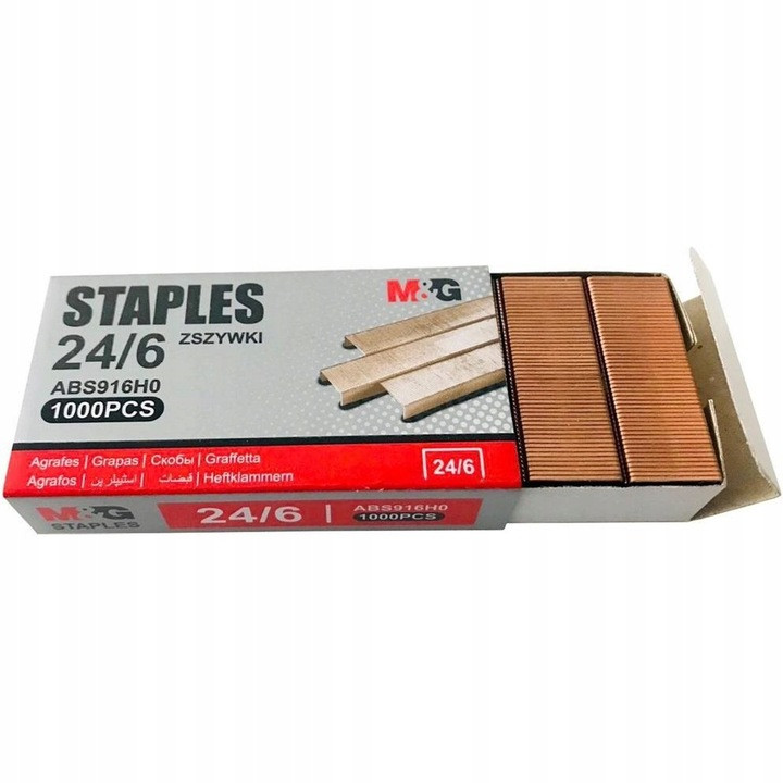 Zszywki M&G mają rozmiar 24/6, który jest standardowy i pasuje do wiekszości róznych zszywaczy biurowych. Kazde opakowanie zawiera 1000 sztuk zszywek, co zapewnia dlugotrwale uzytkowanie bez konieczności ciąglego wymieniania